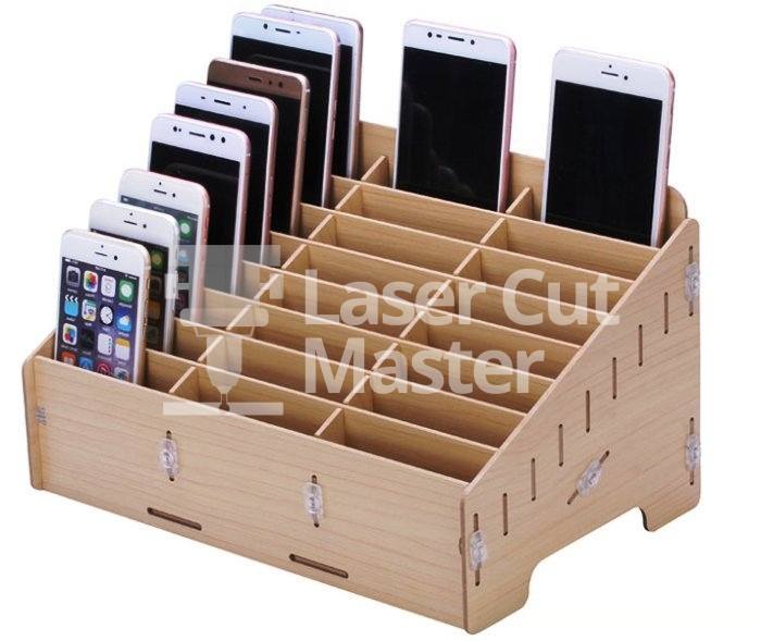 This Rack for Mobile Laser Cut File allows organizing multiple devices elegantly.